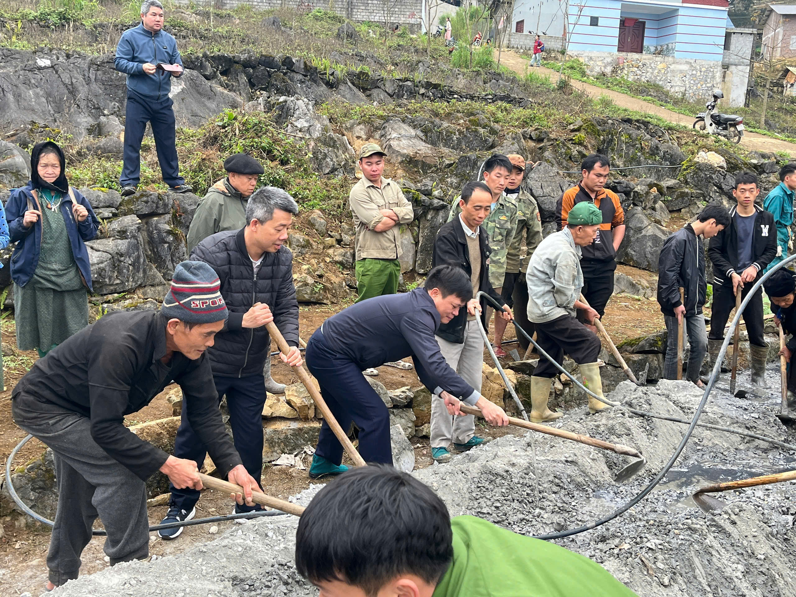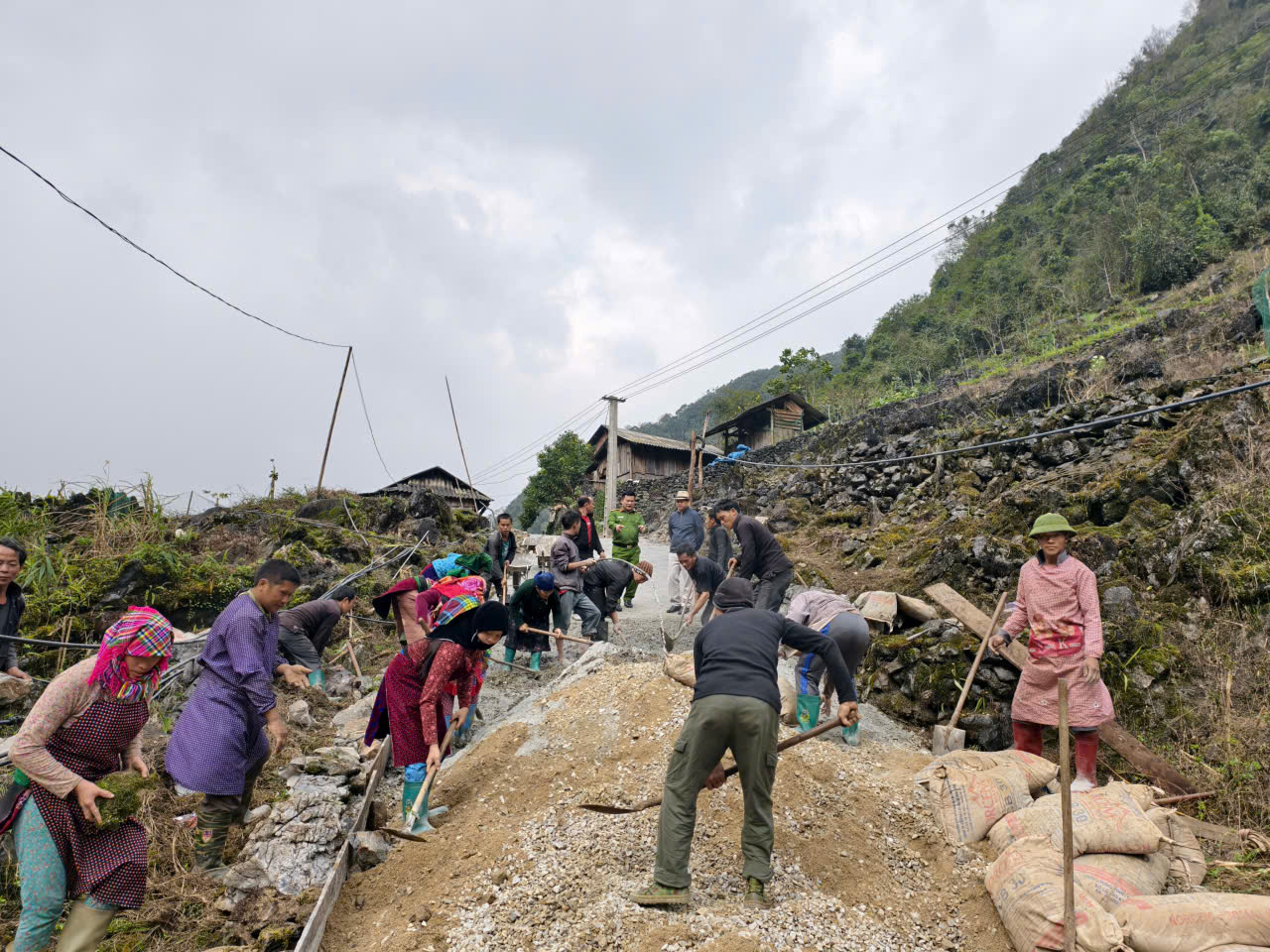 Đặc biệt, Công an xã Cán Tỷ đã chủ động kết nối, phối hợp với các nhóm thiện nguyện trong và ngoài địa phương để hỗ trợ xi măng cho các thôn triển khai làm các tuyến đường. Sự hỗ trợ kịp thời này đã góp phần tháo gỡ khó khăn về nguồn vật liệu, tạo động lực để Nhân dân tích cực tham gia.