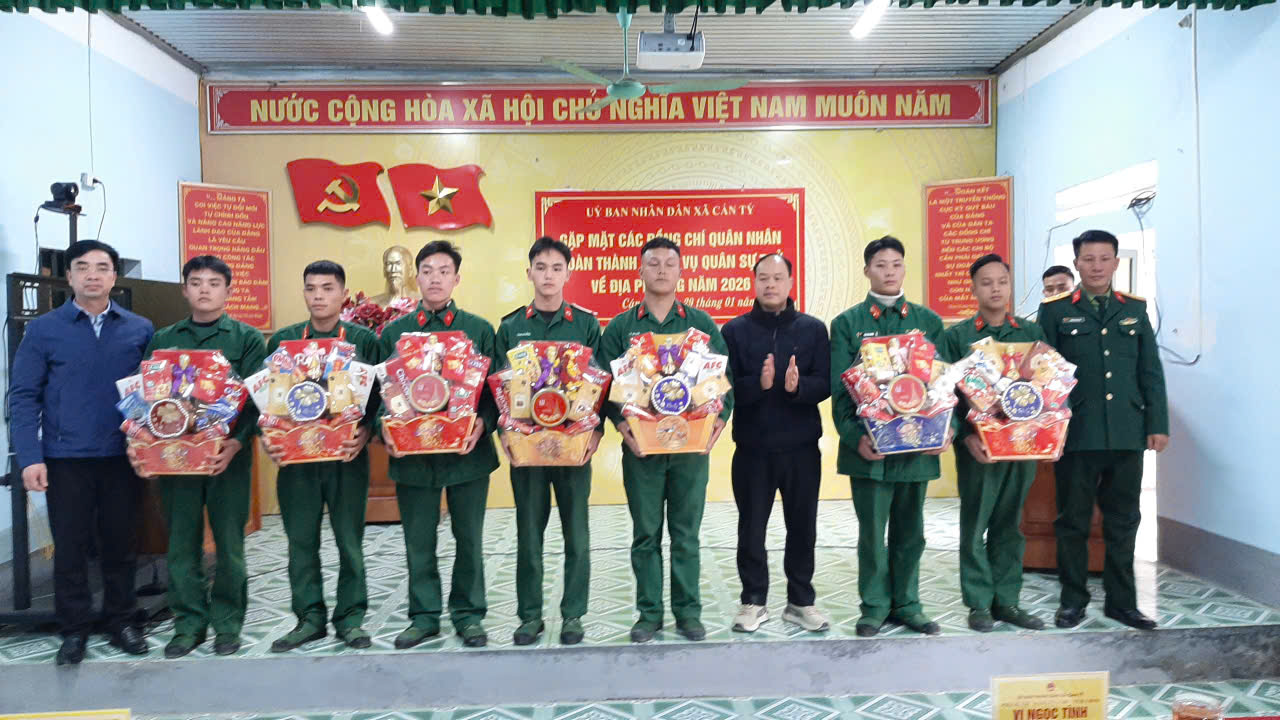 Thực hiện tốt chính sách hậu phương Quân đội, thể hiện sự quan tâm của cấp ủy Đảng, chính quyền đối với công dân hoàn thành nghĩa vụ quân sự Chiều ngày 29/01/2026, Đảng ủy, HĐND, UBND, UBMTTQVN xã Cán Tỷ tổ chức buổi đón nhận quân nhân hoàn thành nghĩa vụ quân sự tại ngũ trở về địa phương năm 2026.