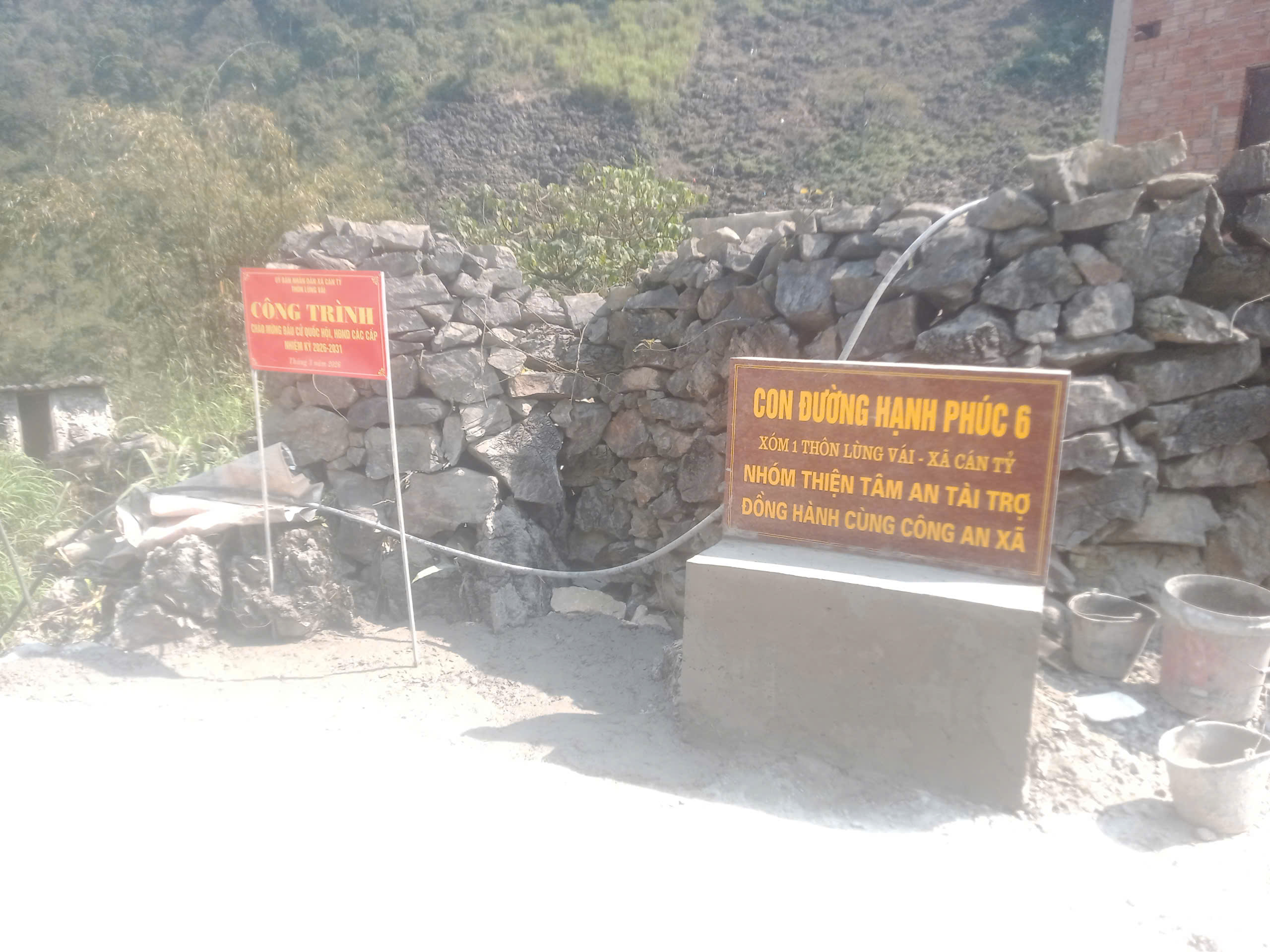 Thông qua sự vận động, kết nối của Công an xã, Phòng Kinh Tế xã Cán Tỷ đã chủ động phối hợp, kết nối với Nhóm Thiện Tâm An, các mạnh thường quân Nguyễn Thi Hoa, Đỗ Tuấn Linh đã tài trợ xi măng để hỗ trợ các thôn trong xã triển khai làm mới và bê tông hóa các tuyến đường giao thông nông thôn. Đây là hoạt động thiết thực nhằm góp phần cải thiện điều kiện đi lại của nhân dân, thuận lợi cho sản xuất nông nghiệp, giao thương hàng hóa, đồng thời thúc đẩy phát triển kinh tế - xã hội tại địa phương.