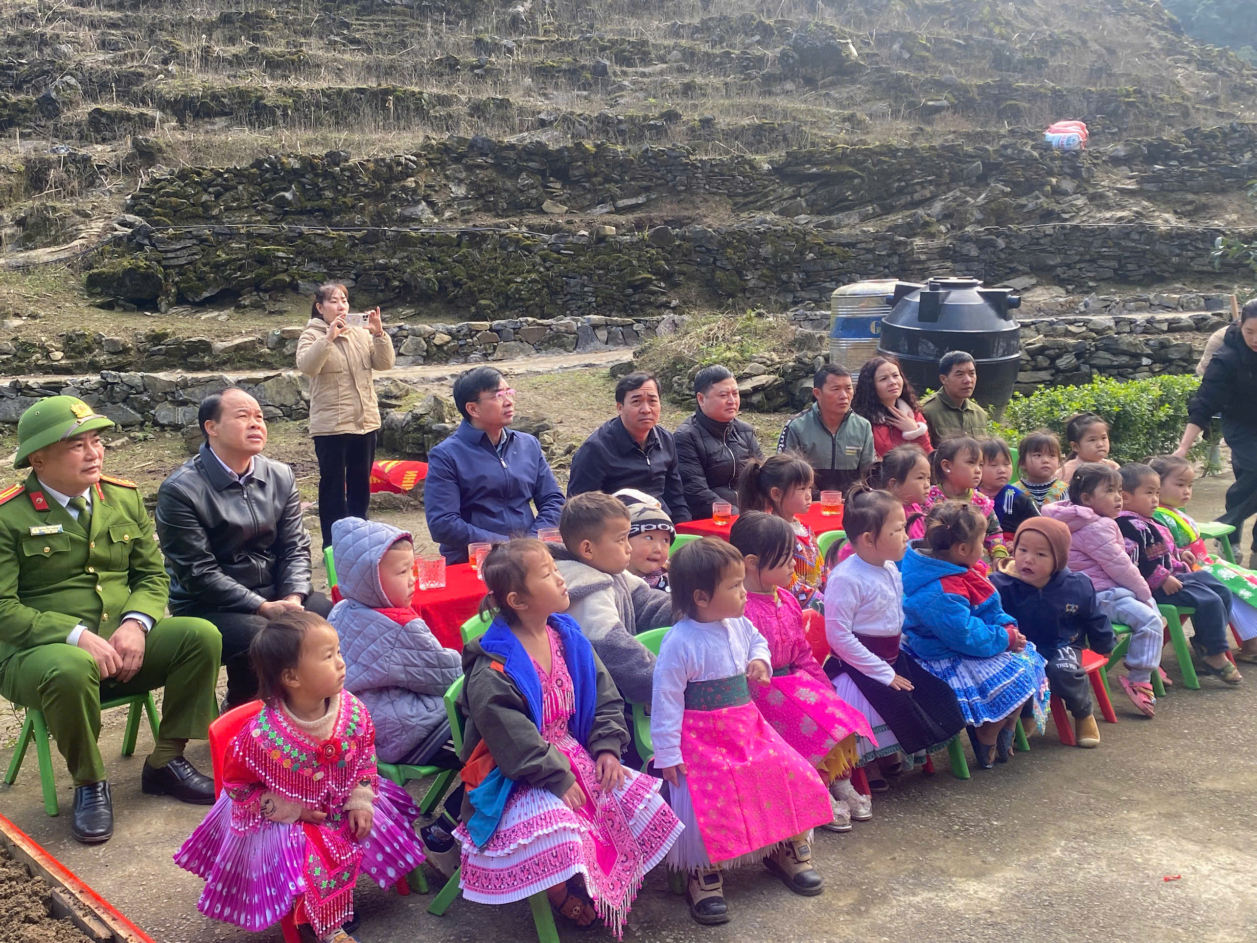 các đồng chí lãnh đạo xã dự lễ khởi công điểm trường mầm non thôn Lùng Vái