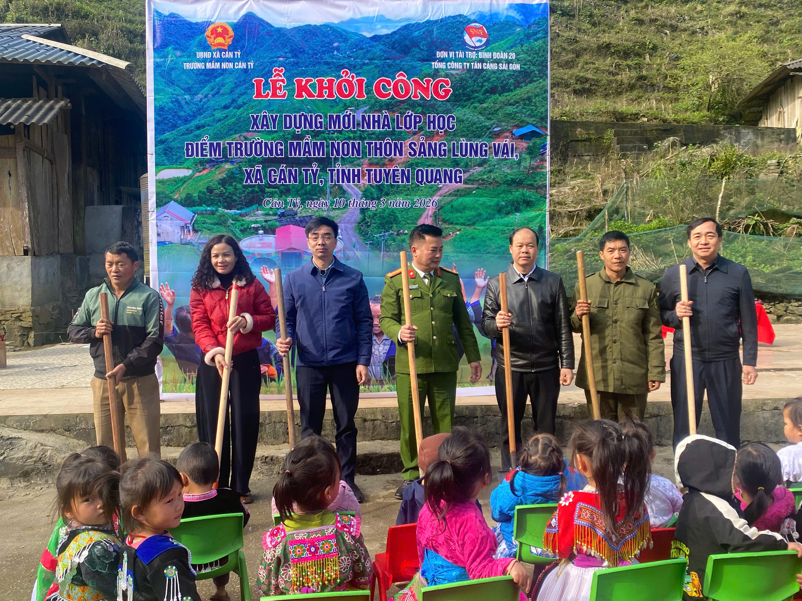 Sáng ngày 10/3, Lễ khởi công xây dựng mới nhà lớp học điểm trường mầm non Sảng Lùng Vái, thôn Lùng Vái xã Cán Tỷ.