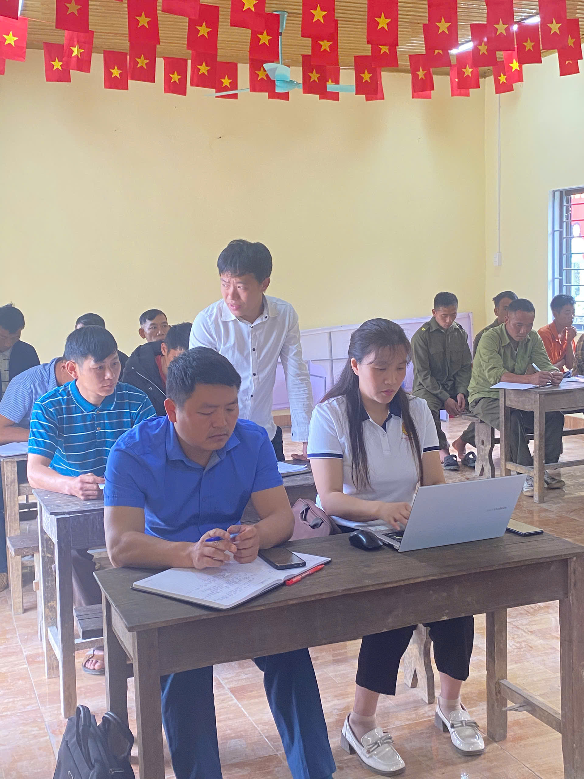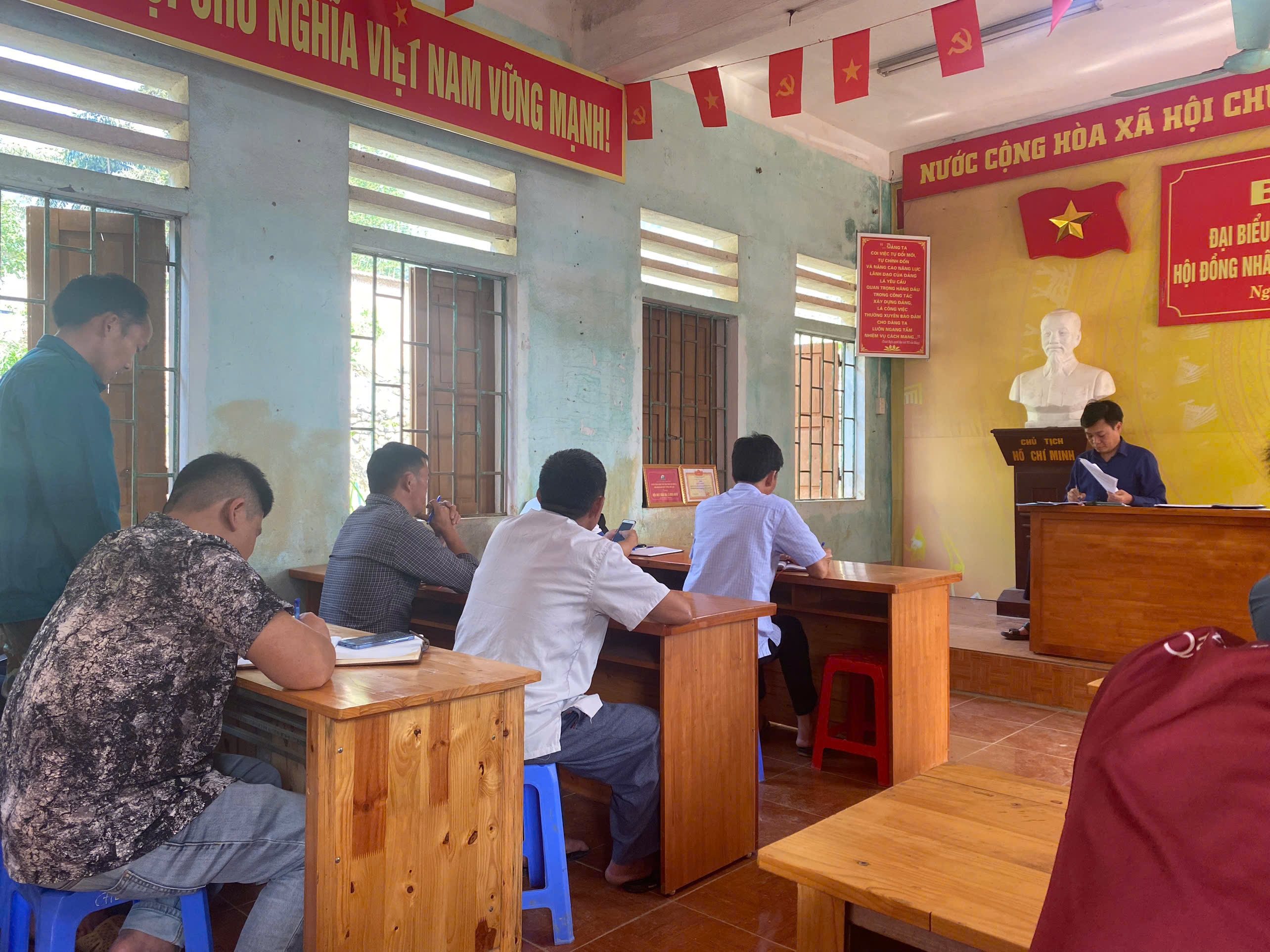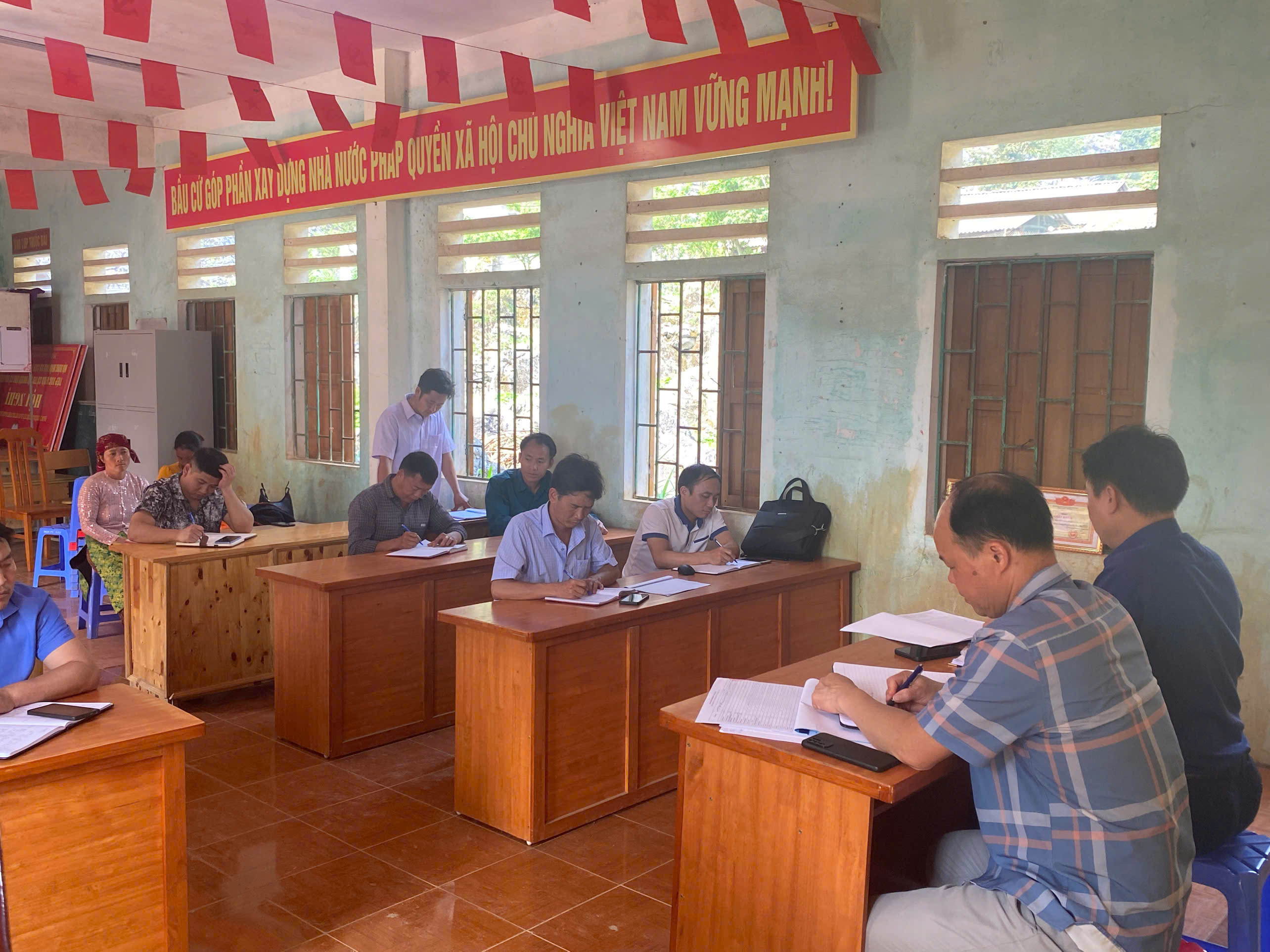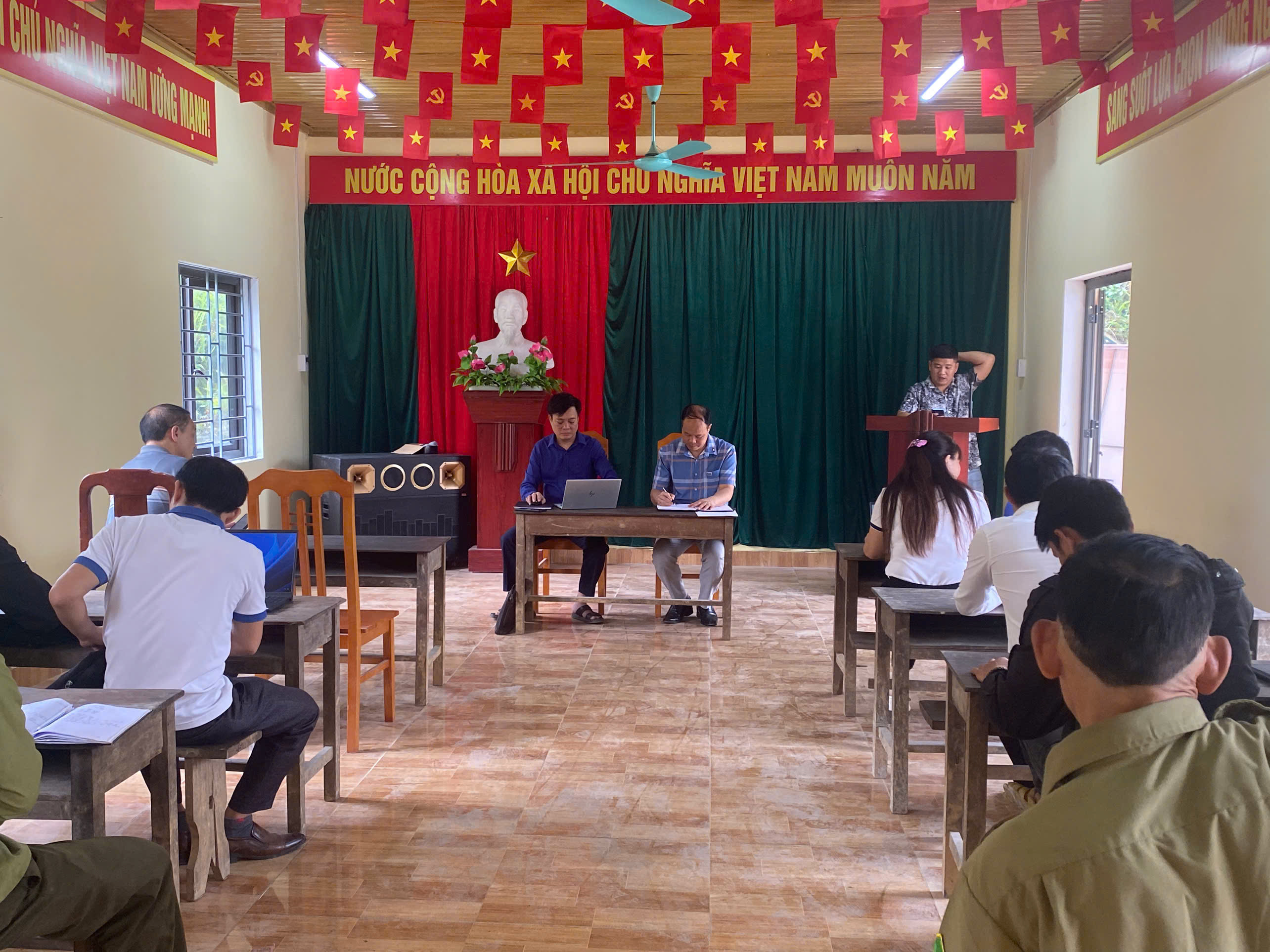 đồng chí Bí thư đảng ủy và đồng chí phó chủ tịch UBND xã chủ trì làm việc với các thôn trên địa bàn xã