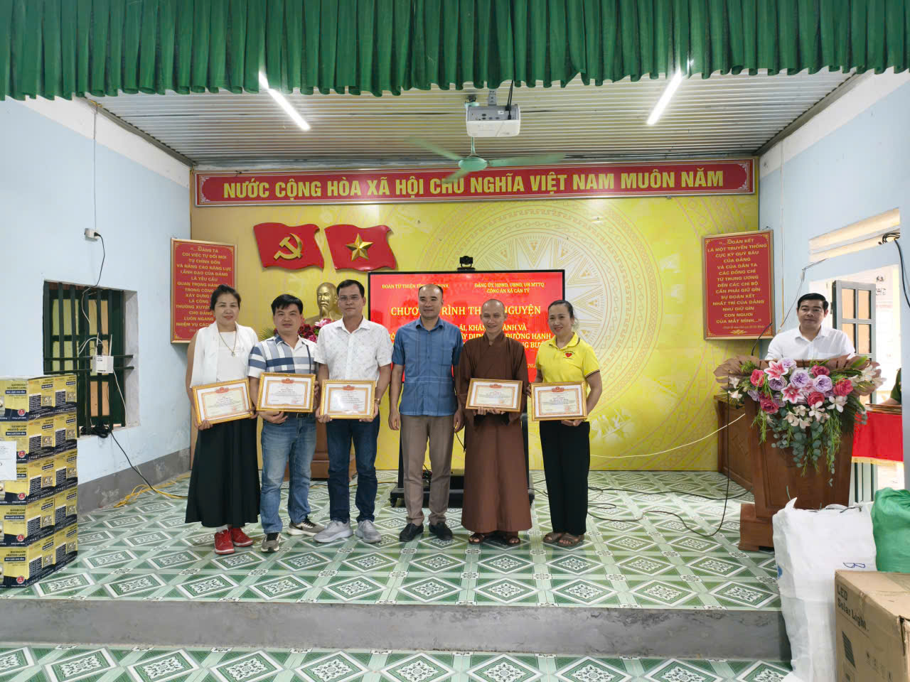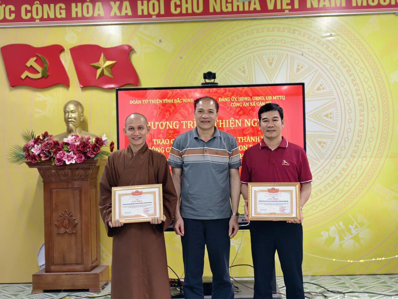 lãnh đạo tặng giấy khen và giấy chứng nhận tấm long vàng các mạnh thường quân, nhà hảo tâm và Câu lạc bộ Thiện nguyện chùa Linh Quang