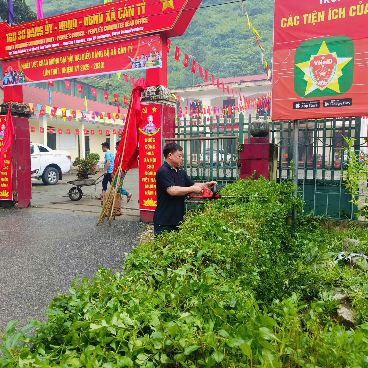 Những hình ảnh trang trí rỡ cờ, hoa tại các cơ quan, tuyến đường hân hoan chào đón ngày lễ lớn của dân tộc chào mừng Quốc khánh 2-9 xã Cán Tỷ.
